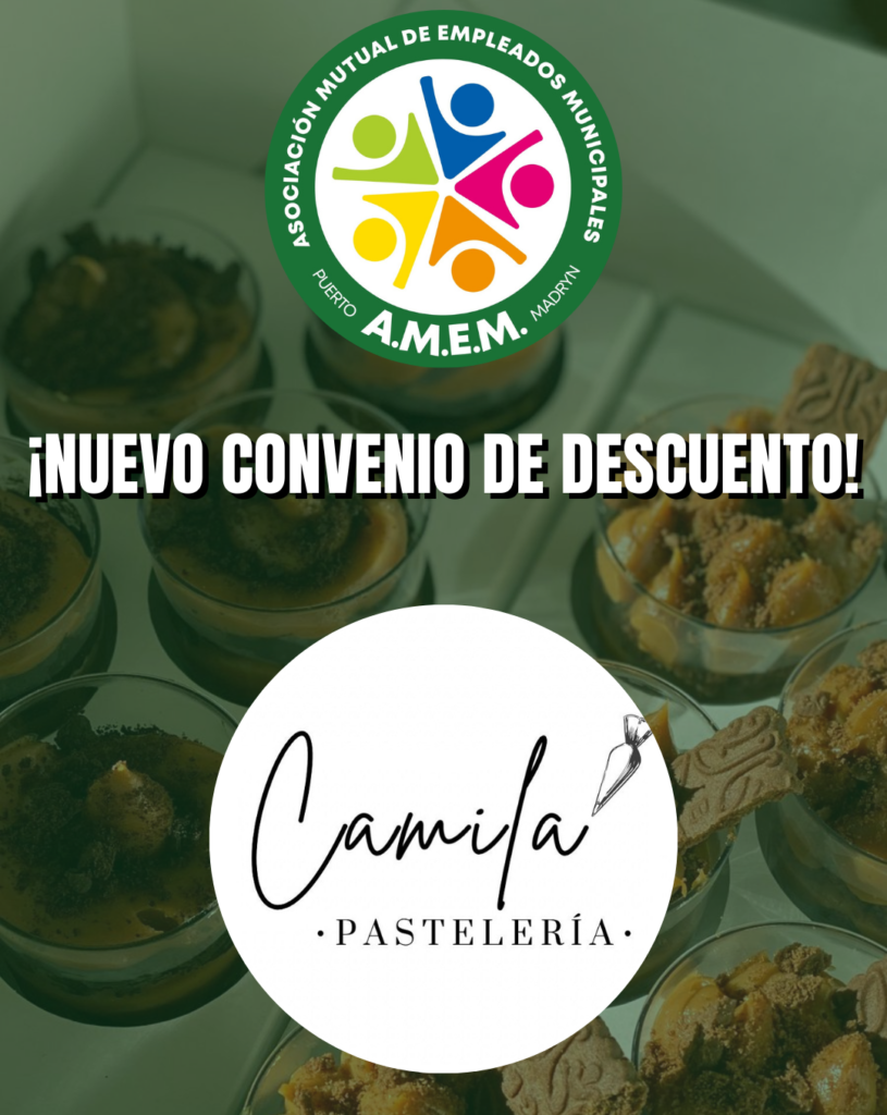 🍰✨ ¡Nuevo convenio de descuento con CamilaPastelería para nuestros asociados!